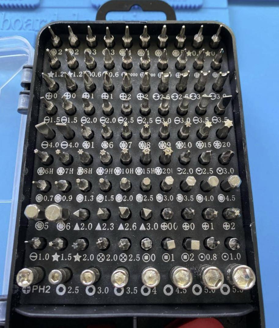 Супер набор, вот реально включает все, что только можно хотеть. В наборе 110 редких бит, все они из стали. Также в комплекте магнитная отвертка с резиновой ручкой, намагничиватель/размагничиватель, пинцет. Все упаковано в небольшой кейс.