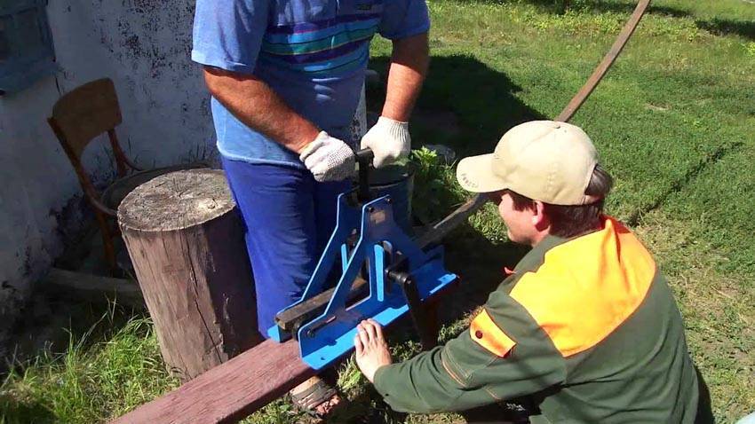 - выдавливающие — работает по типу арбалета, сгибает заготовку выдвигающимся пуансоном с насадкой, выполненной под трубу определенного размера.