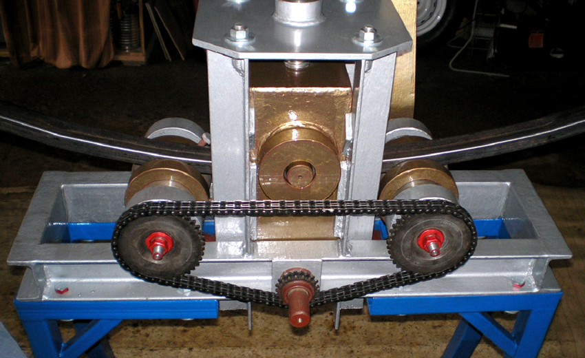 Трубу протягивают через валы вручную помощью рукоятки и закрепленной на осях роликов цепи. Давление усиливают, опуская нажимной болт. Профиль постепенно изгибается и приобретает форму дуги.