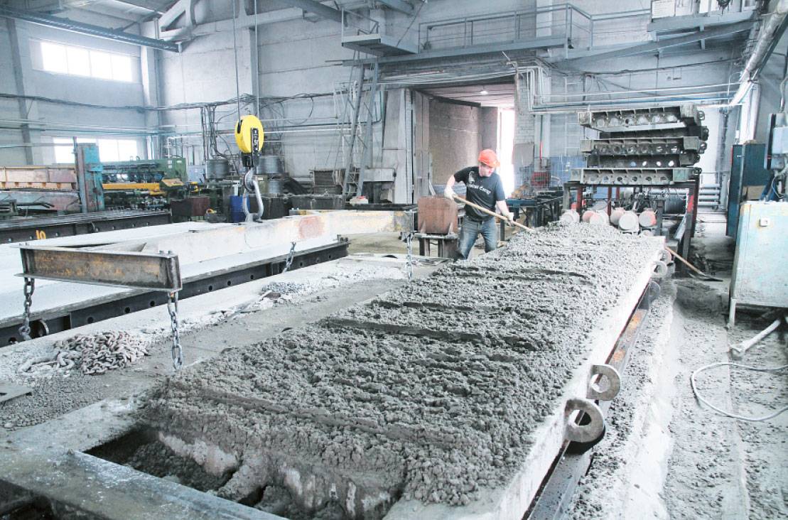 Это вибростол на заводе для формования пустотных плит перекрытия