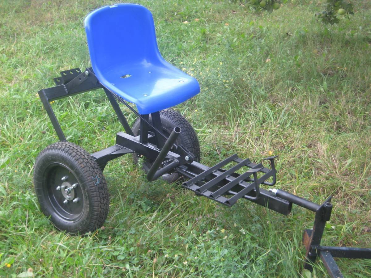Сиденье-адаптер превращает культиватор в минитрактор. Он представляет собой задний мост, с установленным сиденьем для водителя, и сцепкой для прицепного оборудования.
