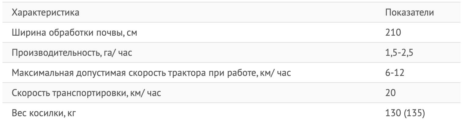 - Рабочую скорость и производительность. Последний показатель обычно составляет от 0,25 до 0,35 га/час.