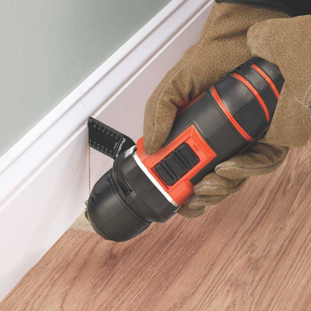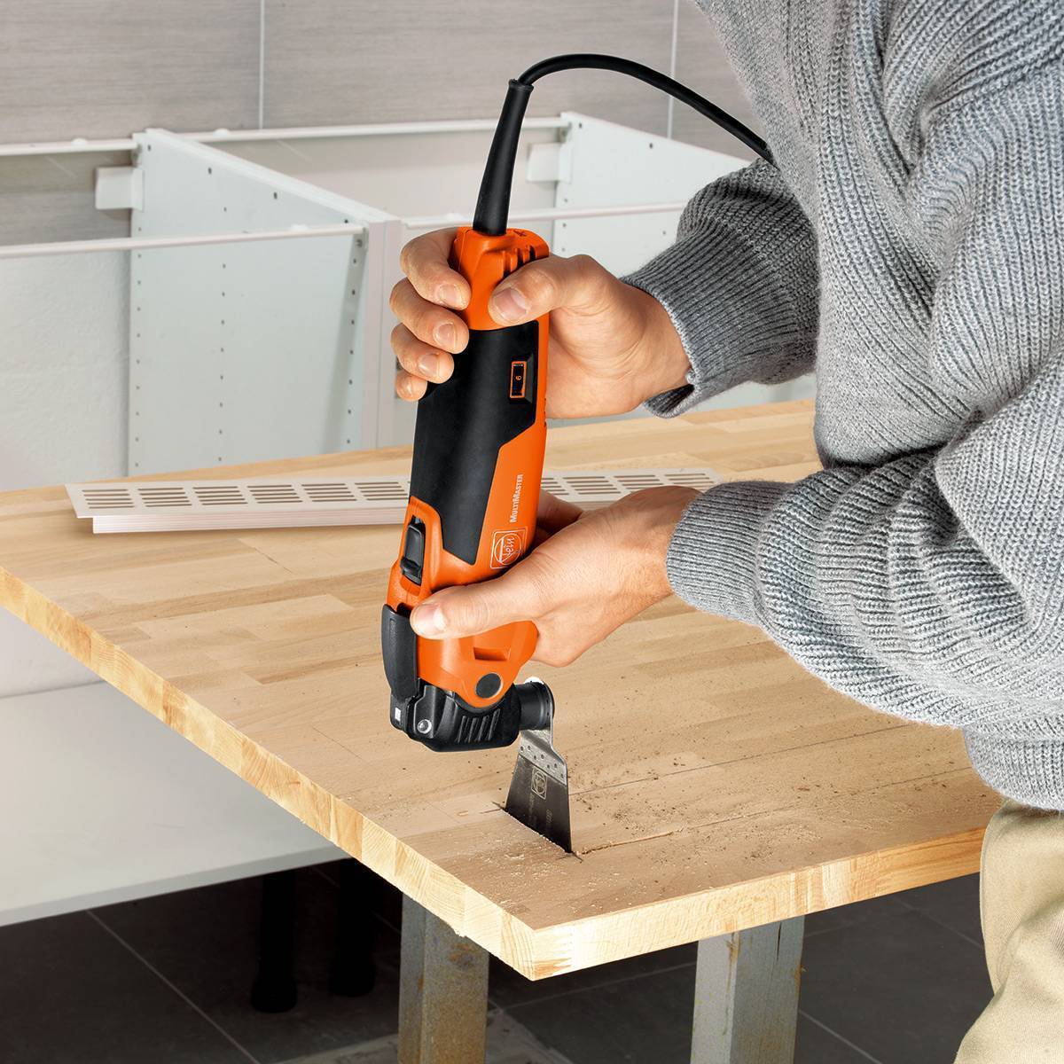 Перед тем, как приступать к применению прибора для резки древесины, необходимо еще раз отметить, что использовать его как полноценную циркулярную пилу или электролобзик не рекомендуется. Ведь прибор предназначен исключительно для выполнения небольшого объема работ. Его рекомендуется использовать, если необходимо отпилить доску, расположенную в труднодоступном месте или вырезать отверстие внутри заготовки. Теперь переходим к непосредственному применению реноватора для древесины: