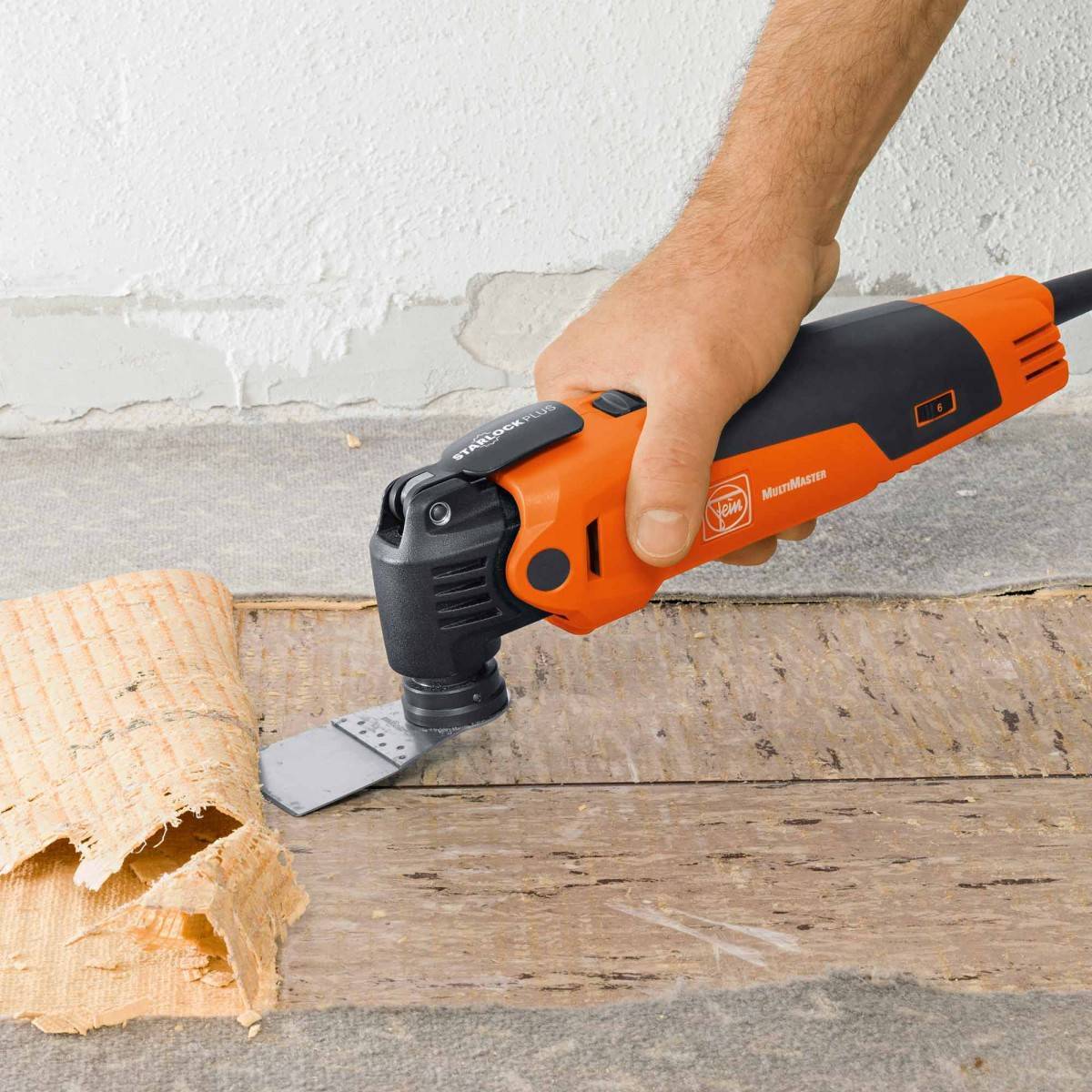 Также многие потребители используют указанный электроинструмент для обработки деревянных блоков, фанеры, а также плинтусов. Помимо прочего, есть возможность эффективно зачищать бетонную поверхность. Для скобления линолеума стандартные насадки не подходят. В данном случае следует приобрести их в магазине отдельно.