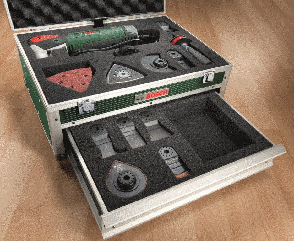 | Комплектация | В комплект входят насадки для МФИ – от 3 до 35 штук. Каждая из них отвечает за свою функцию – для резки дерева, металла, пластика и прочих металлов. Наличие кейса сильно облегчит хранение и транспортировку. |