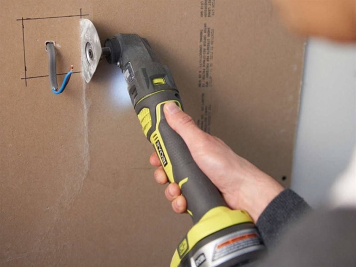 При помощи реноватора можно выпилить квадратные, прямоугольные и других форм сквозные отверстия. Причем они получаются аккуратными и без наличия дефектов. Другими видами инструментов вырезать такие отверстия довольно сложно (даже при использовании дрели, получить аккуратные сквозные отверстия, кроме круглой формы, невозможно).