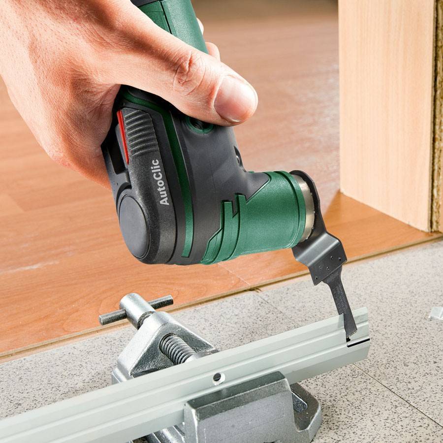 Использоваться в бытовых условиях указанный реноватор может за счет простоты управления. Мощность максимум в этой модели есть возможность выставлять 5 кВт. В данном случае устройство за минуту будет совершать более 6 тыс. оборотов. Все это позволит со специальной насадкой очень быстро распиливать чугунные трубы. С пластиком можно работать очень эффективно с помощью сегментных полотен. Для резки гипсокартона данный электроинструмент также применяется. Система автоблокировки в модели установлена. Дополнительно имеется ограничитель в передней части конструкции для безопасного использования полотна.