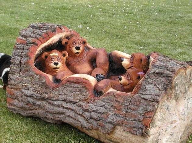 С недавних пор резьба по дереву бензопилой перестала быть чем-то диковинным, и в нашей стране с каждым годом появляется все больше мастеров-виртуозов, способных сделать из бревна практически любую скульптуру. Сразу отметим, что если вы решили достичь каких-то высот в данной сфере, то придется приложить немало усилий и потратить много времени на осваивание всех премудростей работы, мы же рассмотрим основы и затронем несколько простых вариантов, которые можно осилить и без наличия опыта.