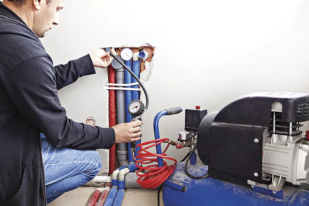 Проверка на прочность системы отопления с помощью воздуха проводится компрессором. Присутствие утечек на соединениях трубопровода и в подозрительных местах проверяется мыльным раствором.