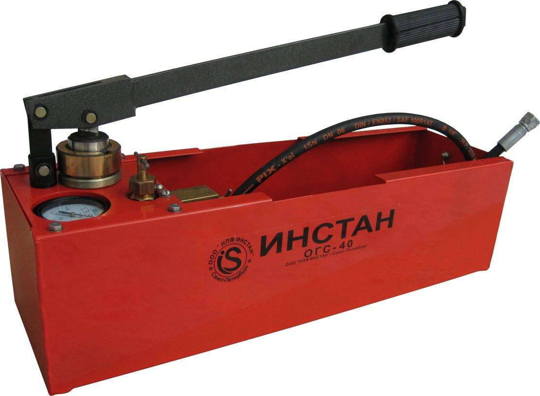 Оптимальным инструментом для точной и быстрой проверки небольших трубопроводных систем является насос опрессовочный ручной. Практически всегда это небольшие модели, чье рабочее давление не превышает 60 бар. Нагнетание давления происходит с помощью мускульной силы оператора особым рычагом. Его же можно зафиксировать и использовать как рукоятку прибора во время транспортировки.