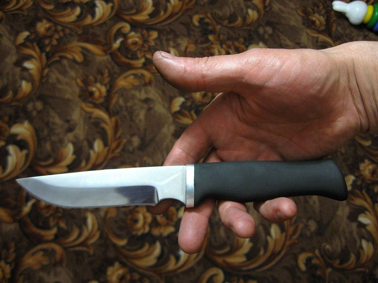 Размер рукояти должен быть таким, чтобы нож удобно сидел в руке. Считается, что рукоять оптимальной длины должна выходить за пределы обхватывающей ее ладони на 3-3,5 см. Для ручки охотничьего ножа есть еще одно требование: при обхвате большой палец должен слегка перекрывать только указательный, но не должен касаться среднего, безымянного и мизинца.
