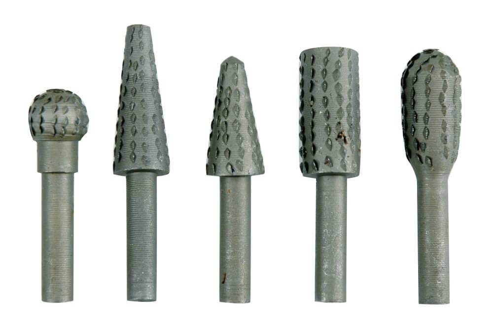 Естественно, самыми недорогими являются борфрезы из углеродистых сталей, но и срок службы у них значительно меньше, чем у алмазного и твердосплавного инструмента. Твердосплавные шарошки не только отличаются повышенным ресурсом использования, но и позволяют эффективно обрабатывать древесину твердых пород, а также поверхность изделий, изготовленных из металла.