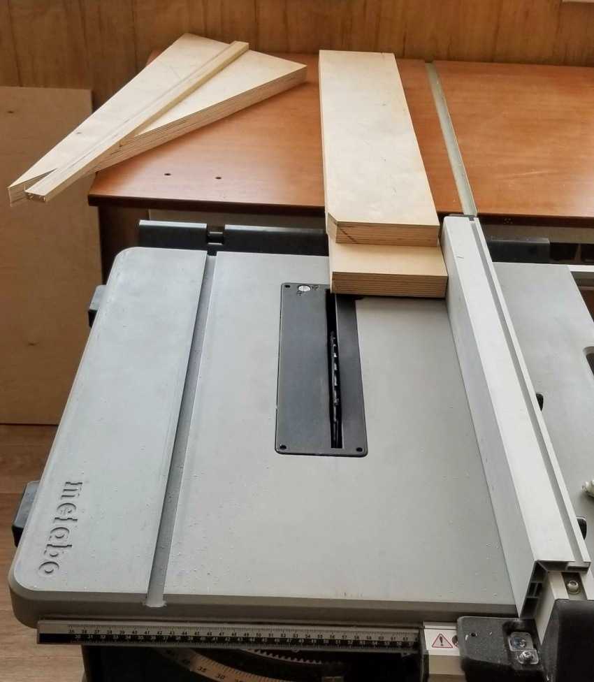 вырезается фанера размером несколько шире, чем стол циркулярки;