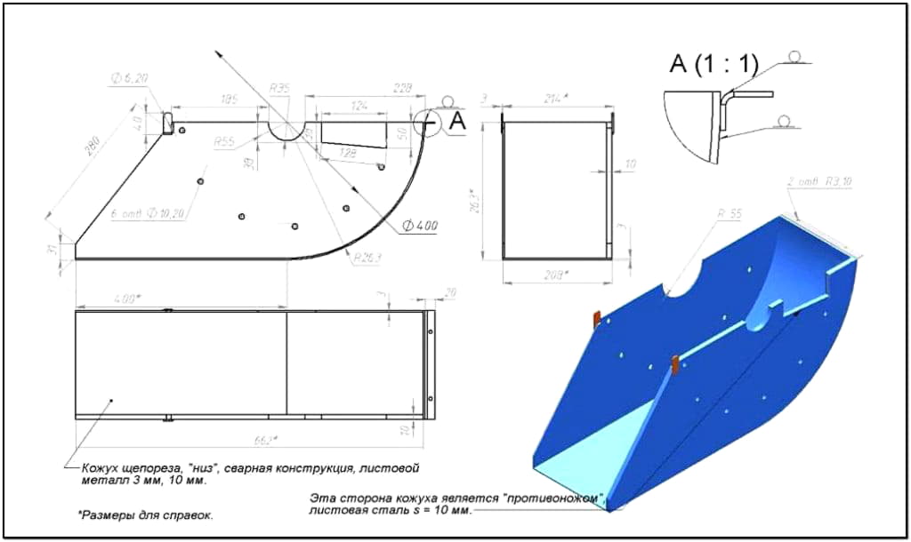 Некоторые детали сделать самостоятельно сложно, а их покупка может обойтись дорого. Найти профессиональный чертеж щепореза бесплатно вряд ли получится, чаще всего в свободном доступе наброски или студенческие работы. Разработать грамотную схему может только специалист, но за его труды придется заплатить.