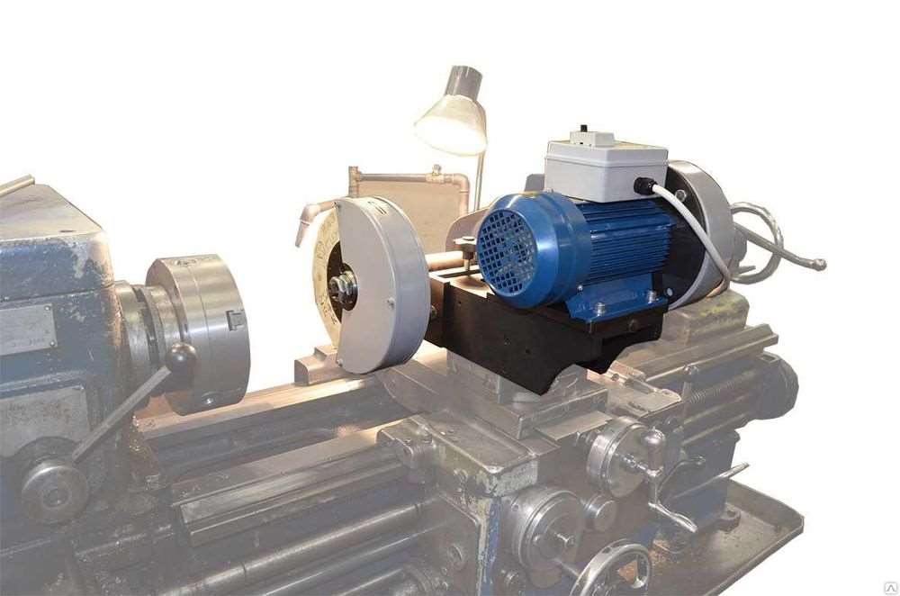 - установленный электродвигатель подключается к цепи токарного станка, что определяет универсальность всей конструкции. при этом также есть трехфазная вилка для включения в отдельную цепь питания;