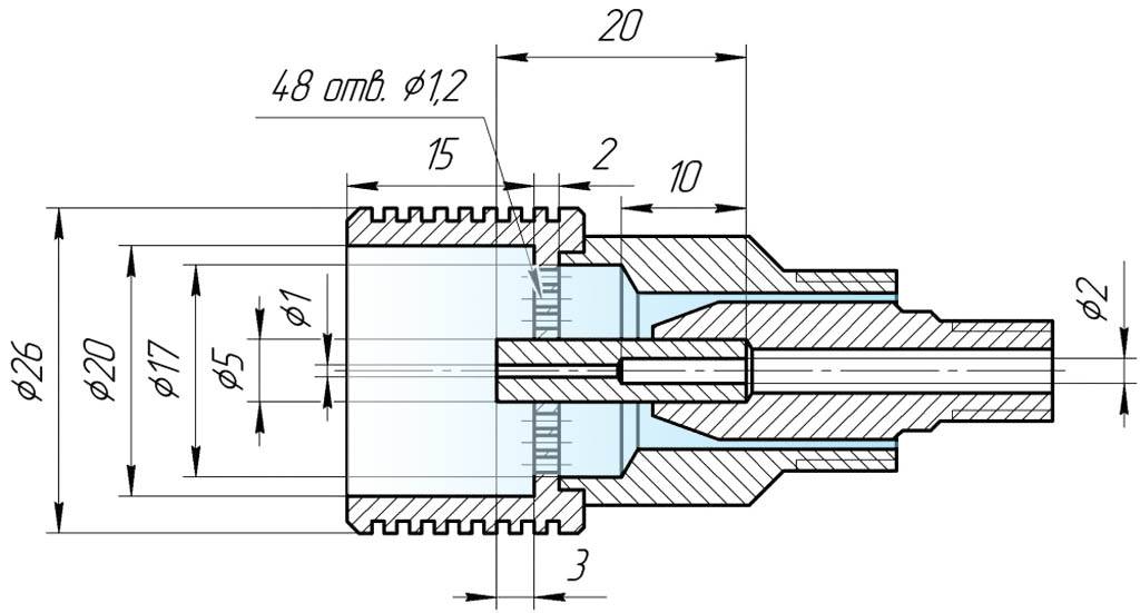 Чертеж распылительной головки эжекционной горелки для жидкого топлива
