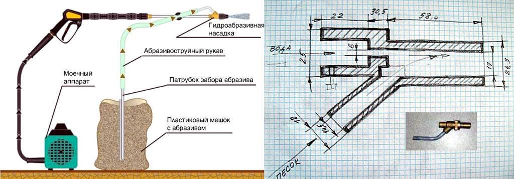 Схема устройства гидропескоструйной установки и простая насадка для гидропескоструйной обработки
