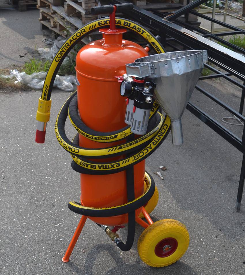 - емкость небольшого объема – выполняется из огнетушителя или фреонового баллона, именно сюда помещается пескоструйный песок;