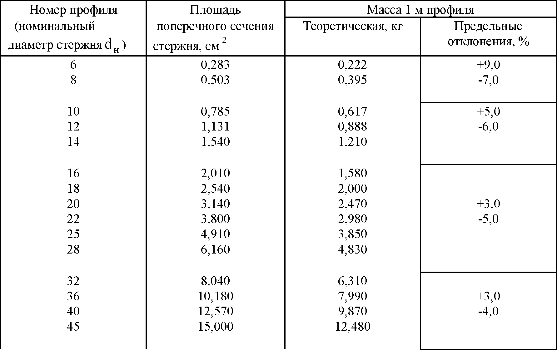 В соответствии с ГОСТом 5781-81 выделяют 20 основных диаметров арматуры