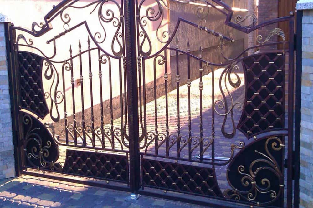 Рисунок 5. Глухие металлические ворота с элементами ажурной художественной ковки.