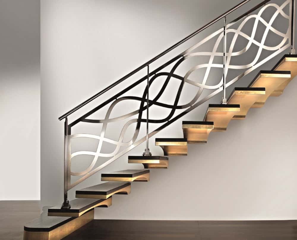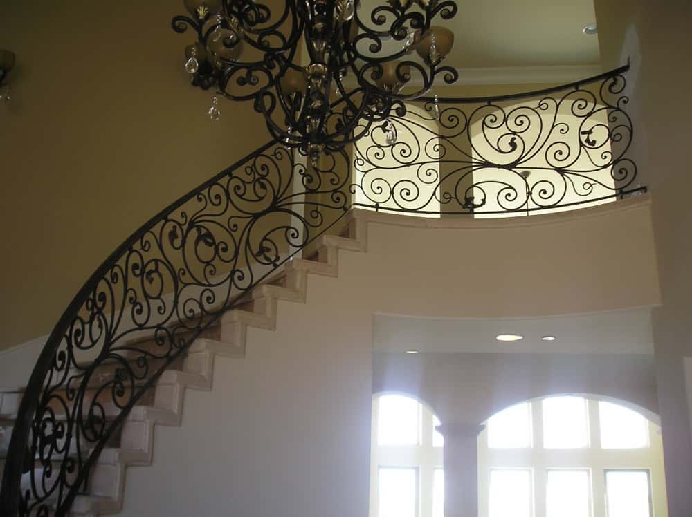 Лестница и люстра созданы одним кузнецом и потому идеально сочетаются между собой