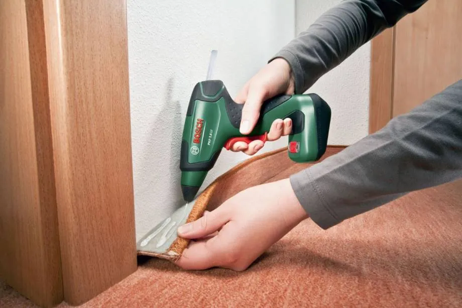 - При выполнении ремонта и в строительстве. Он может применяться как внутри помещений, так и снаружи. При этом клей обладает прекрасной стойкостью к атмосферным воздействиям. Им можно приклеить линолеум, плитку, деревянные или металлические профили, гипсокартон, пластиковые и стеклянные элементы и др. Для ремонта и строительства используются толстые стержни (как правило, 11 мм), но для тонких работ могут применяться 7 мм.