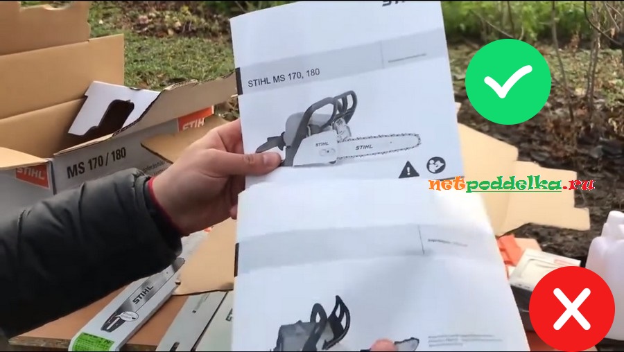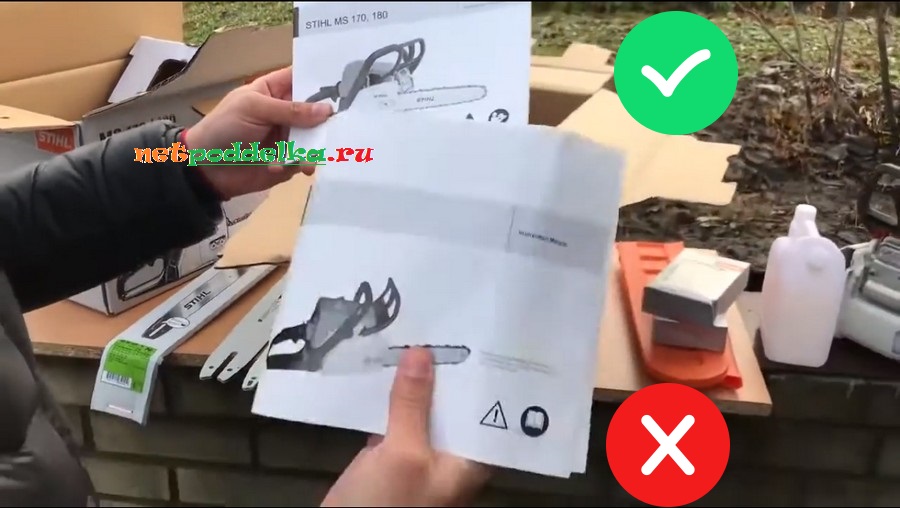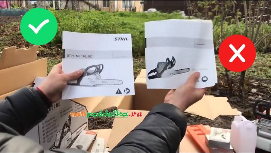 Еще один способ как определить бензопилу Штиль от подделки ‒ посмотреть на инструкцию. У оригинала обязательно указывается модель или модели, для которых подходит документация. Мошенники же выпускают одну инструкцию на все случаи жизни. Поэтому подделка бензопилы Штиль 660 и реплика Stihl MS 180 будут иметь одинаковую сопроводительную документацию.