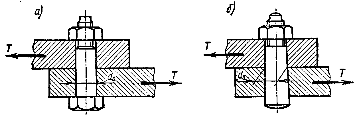Рис. 3.36. Схемы применения болтов, поставленных без зазора