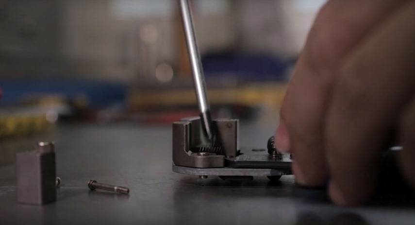 Стриппер переворачивают на другую сторону, чтобы осторожно снять стопорные кольца осей верхних губок