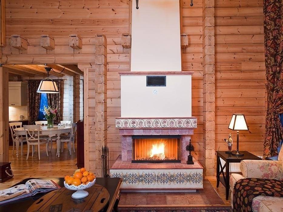 Камин в соседстве с клееным брусом – это ответственный шаг, но он принесет много радости при условии бережного и внимательного отношения.