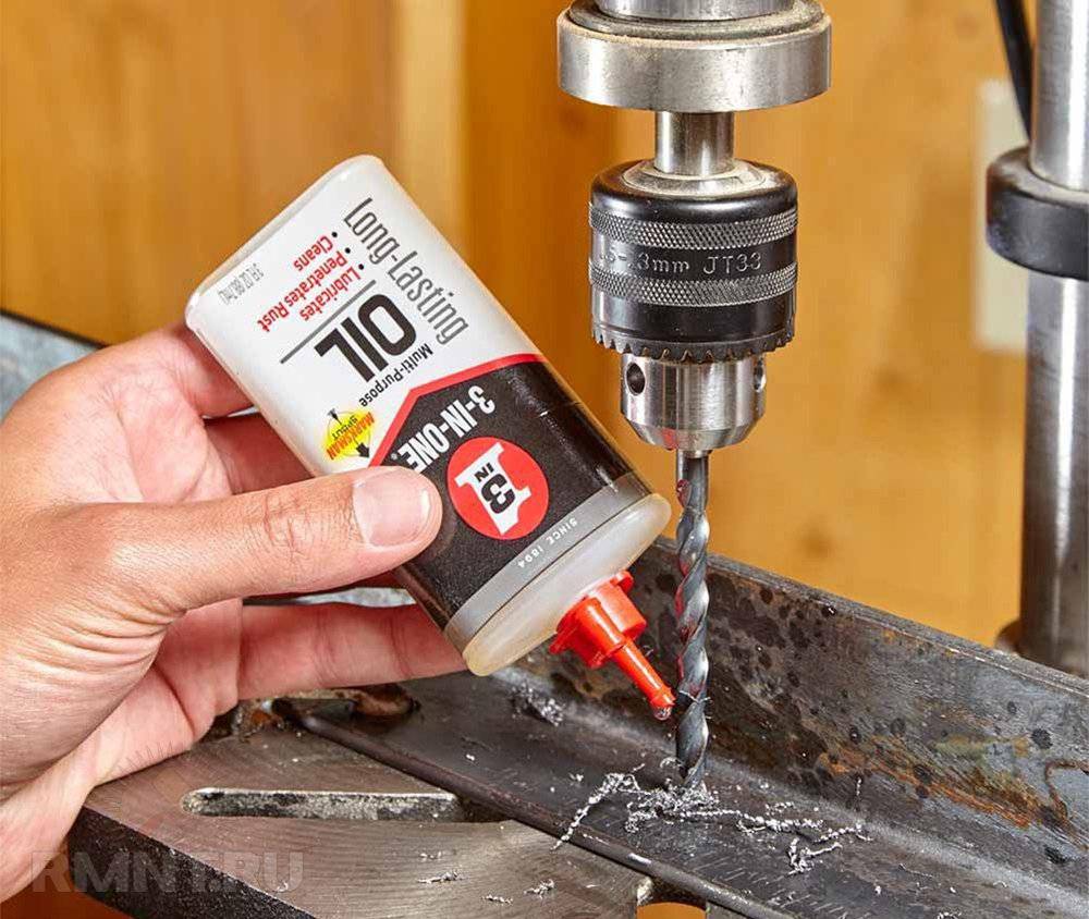 Вместо масла могут использоваться и другие охлаждающие жидкости. Так, при сверлении нержавейки сверло нужно смачивать олеиновой кислотой. Её испарения вредны, поэтому работать необходимо в респираторе. Для охлаждения также хорошо подходит керосин и мыльная вода — брусок хозяйственного на литр.