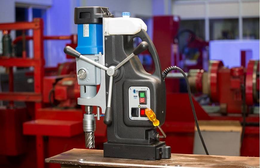 - магнитные станки также называют магнитными дрелями. Они при помощи электрических или постоянных магнитов прикрепляются к металлическим поверхностям. Это удобно для работы в труднодоступных местах, ведь такой станок может работать и на стене, и на потолке вверх ногами;