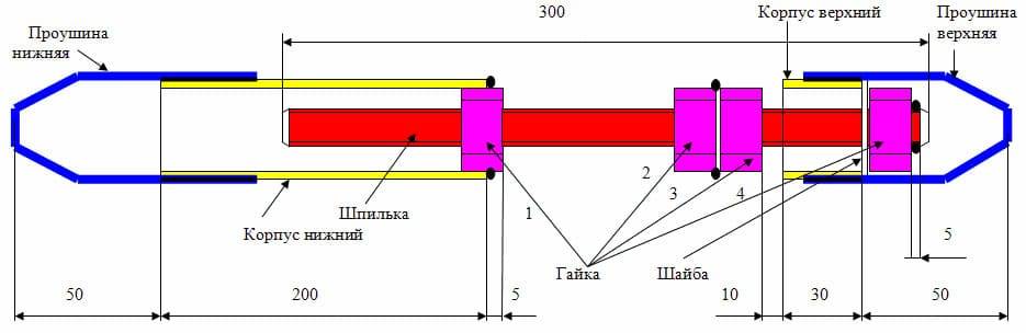 Второй вариант более приемлем в местах возможного контакта приспособления с различными металлическими деталями и инструментами, способными привести к деформации резьбы на стержнях.