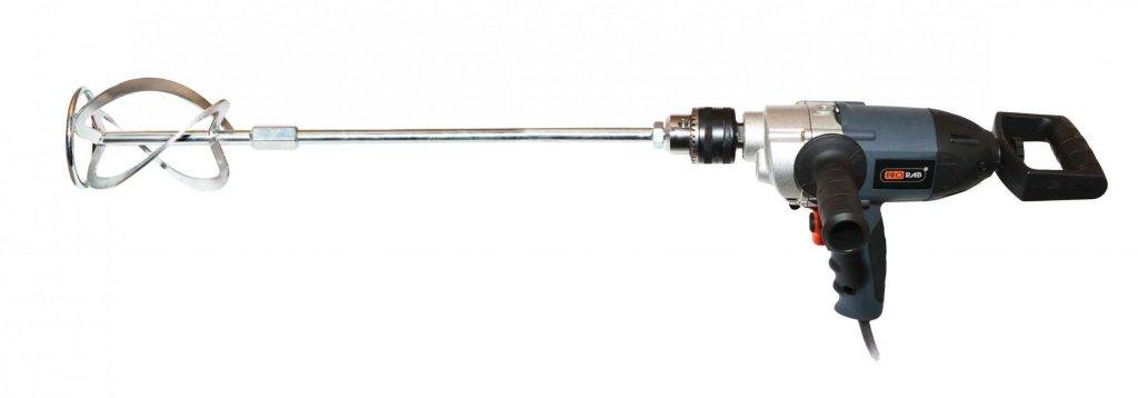 Дрель-миксер отличается от обычной универсальной дрели наличием специальных насадок в комплекте, которые позволяют удобно смешивать жидкие и полужидкие составы. Конструкция инструмента, как правило, предусматривает специальные ручки для удобного хвата во время перемешивания. Дрель-миксер подходит для перемешивания шпаклевок, клеев, красок и прочих строительных растворов объемом до 10 л и позволяет добиться более тщательного смешивания, чем при ручном процессе.