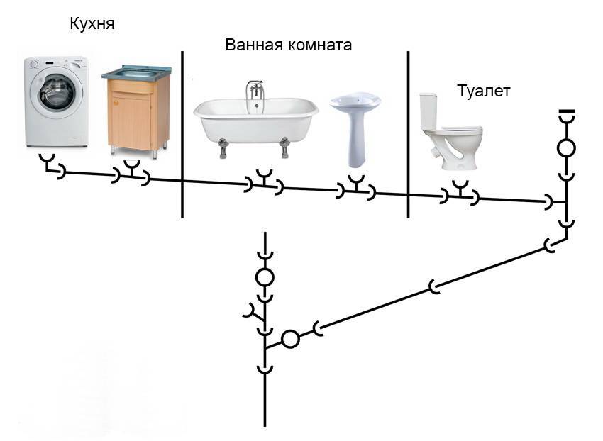 - минимальная протяженность. Целесообразно все места в помещении, где располагаются сантехнические приборы, размещать вблизи друг от друга. Тогда соблюсти необходимый уклон слива будет намного легче;