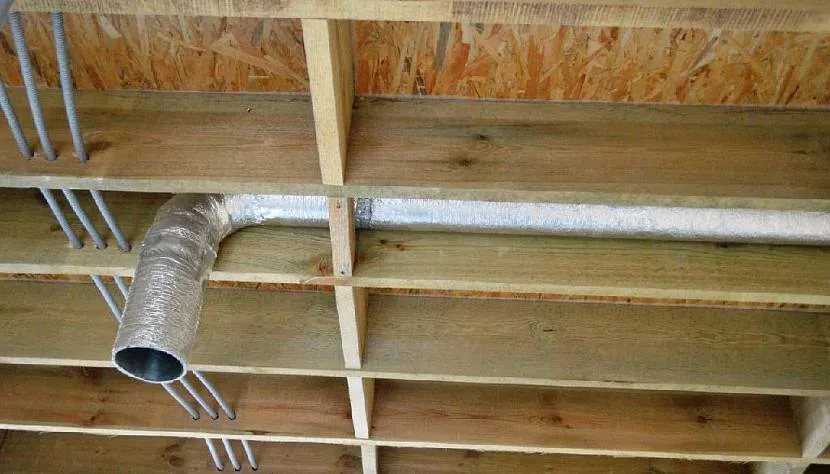 Вытяжная труба прокладывается под потолком в процессе возведения дома Источник zen.yandex.ru