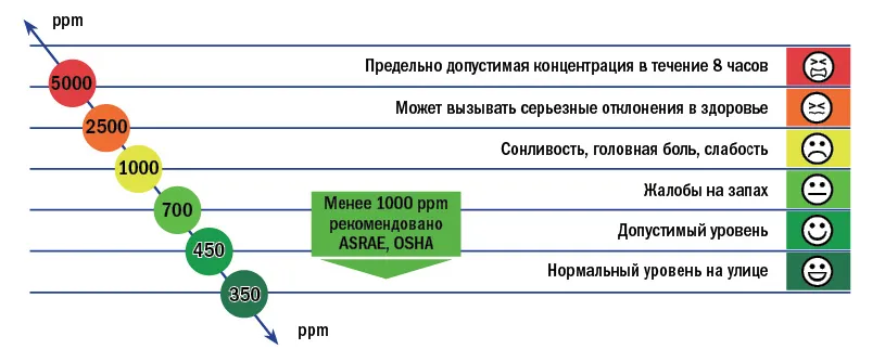 Концентрация co2 в воздухе и его влияние на самочувствие человека Источник 7lestnic.com