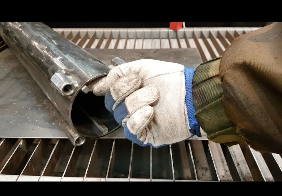 - Оставшийся полый цилиндр трубы разрезается вдоль пополам болгаркой.