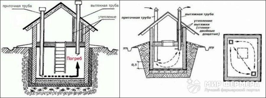 Схема правильной вентиляции погреба в гараже