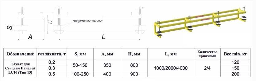 Захват для подъема сэндвич панелей